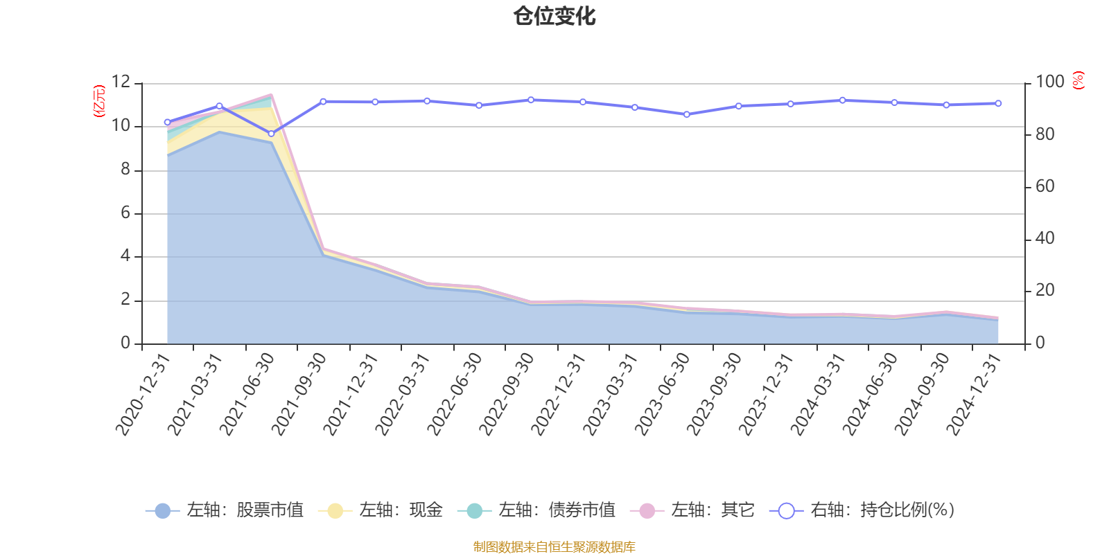 据定期报告数据统计,近三年平均股票仓位为91.89%,同类平均为84.92%。2022年三季度末基金达到93.58%的最高仓位,2021年上半年末最低,为80.62%。