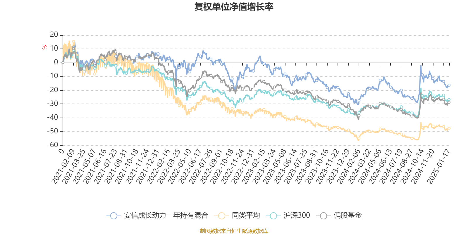 截至1月17日,安信成长动力一年持有混合近三个月复权单位净值增长率为-2.29%,位于同类可比基金552/646;近半年复权单位净值增长率为4.93%,位于同类可比基金431/645;近一年复权单位净值增长率为17.74%,位于同类可比基金175/633;近三年复权单位净值增长率为-17.83%,位于同类可比基金96/442。